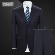 启航金盾男装羊毛西服套装中年商务正装蓝色条纹西装白领上班西服