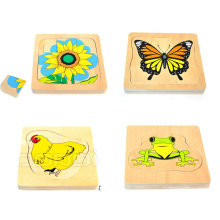 向日葵母鸡青蛙蝴蝶成长过程 儿童益智多层拼图 蒙氏早教宝宝玩具
