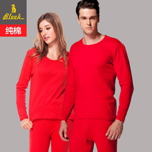 bleek男士保暖内衣猴年本命年红色结婚喜庆秋衣秋裤纯棉套装 男