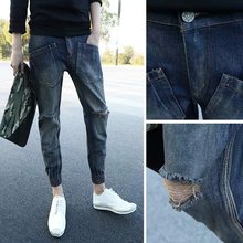 春夏季九分牛仔裤男士加大码小脚哈伦裤9分收紧锁腿缩口束脚裤潮