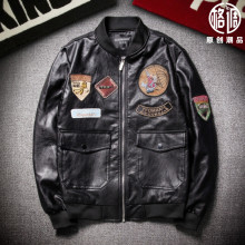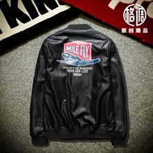 日系复古刺绣PU皮衣机车夹克 潮男MA-1飞行员棒球服青年工装外套