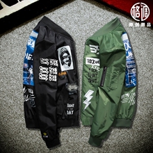 春秋街头嘻哈情侣夹棉棒球服MA-1飞行员夹克衫男女工装机车外套潮