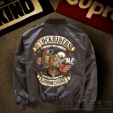 日系骷髅男装MA-1飞行员夹克情侣潮牌机车皮衣男女棒球服工装外套