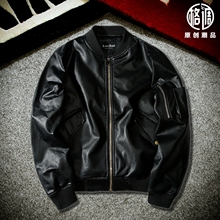 美国空军MA-1飞行员PU水洗皮夹克潮牌机车皮衣男女棒球服工装外套