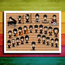 有框画 个性客厅书房儿童房音乐排练室装饰画挂画 Q版交响乐队