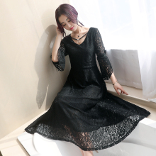 大码女装胖mm2017夏季新款连衣裙中长款胖妹妹显瘦复古蕾丝打底衫
