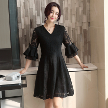 加肥加大码女装胖mm连衣裙秋装新款胖妹妹200斤显瘦勾花镂空a字裙