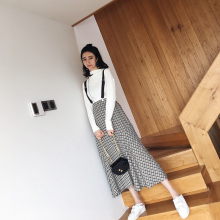 ufxv 原创 2017春季新款雪纺吊带半身裙小千鸟格不规则半身长裙