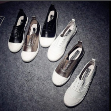 女式皮面条纹松紧带韩版低帮休闲鞋学生鞋小白鞋球鞋板鞋女帆布鞋