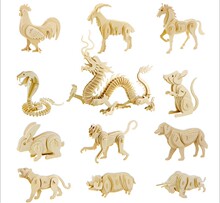 手工3d立体拼图动物模型益智玩具 手工智力拼插木制十二生肖拼板