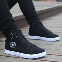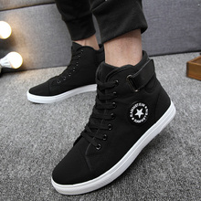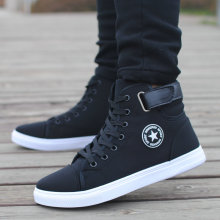 春夏新款韩版高帮帆布鞋男时尚透气男鞋青少年板鞋系带休闲布鞋男