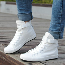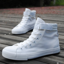 夏季男士高帮帆布鞋男韩版潮鞋休闲男鞋英伦板鞋白色布鞋 男