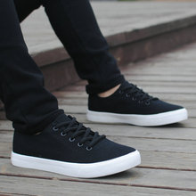 夏季新款纯色帆布鞋男时尚板鞋低帮系带男鞋青年韩版透气布鞋 男