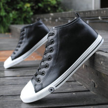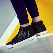 夏季男鞋韩版高帮鞋 男皮面帆布鞋男时尚板鞋双拉链保暖休闲鞋