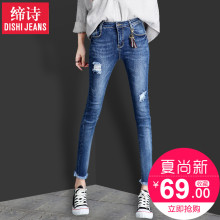 破洞牛仔裤女韩版时尚毛边九分小脚女裤2017春季新款修身显瘦女装
