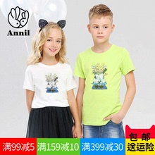 安奈儿2017新款男童女童短袖T恤文化衫家庭亲子装AM721643