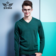 PB宝利博纳男士纯羊毛衫男加厚韩版v领套头冬季毛衣男 针织衫男装