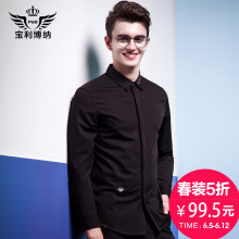 宝利博纳 2017春季新款长袖衬衫男黑色薄男士衬衣男长袖 修身韩版