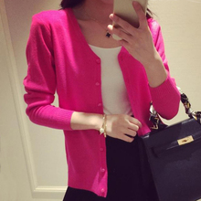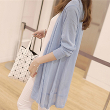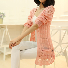 开衫女2016春夏薄款修身显瘦毛衣外套外搭春秋款女士中长款针织衫