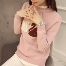 2016春季春秋韩版花边半高领毛衣女套头短款修身长袖针织衫打底衫