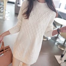 2016秋冬季新款半高领毛衣女套头中长款加厚修身加长款针织衫外套
