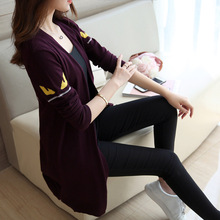 2016秋季新款中长款针织开衫女士春秋款薄长袖外搭加长版毛衣外套