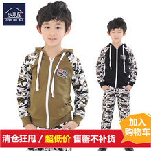 乐米屋男童秋装纯棉二件套2017童装中大童儿童男生迷彩卫衣套装