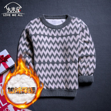 男童加绒加厚毛衣秋冬中大童圆领套头儿童纯棉针织打底衫宝宝春款