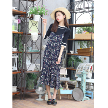 小清新荷叶边雪纺鱼尾裙学生春夏女不规则前短后长碎花吊带连衣裙