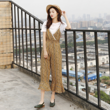 碎花雪纺吊带裤阔腿裤两件套套装女夏季2017春装新款连体裤九分裤