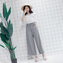 黑白格子高腰阔腿裤女潮夏季九分裤2017新款韩版学生显瘦宽松裤子