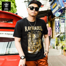 雷哈格尔夏潮加肥加大码男装肥佬特大码胖子短袖t恤纯棉烫金体恤