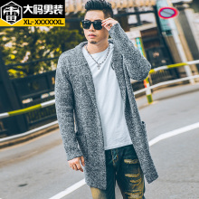 雷哈格尔潮胖子开衫毛衣加肥加大码男装针织衫外套风衣中长款宽松
