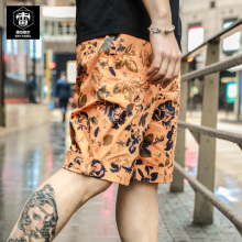 雷哈格尔潮牌大码男裤夏五分裤加肥加大号沙滩裤印花胖子休闲短裤