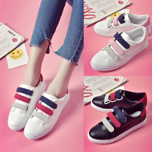 韩版春夏新款单鞋皮面透气小白鞋平底魔术贴休闲板鞋百搭学生女鞋