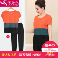 40-50岁时尚妈妈装夏装套装中老年短袖运动两件套中年女装休闲服