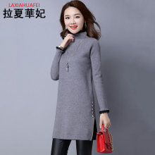 毛衣女秋冬中长款大码新款半高领针织衫女士套头打底衫毛线衣外套