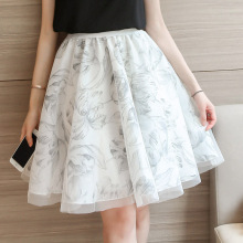 菲雨路春夏季网纱a字裙欧根纱半身裙印花蓬蓬裙女薄款三层中长裙