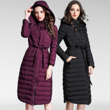 卡西玫2016新款女装鹅绒服加长款修身羽绒服女连帽长过膝显瘦外套