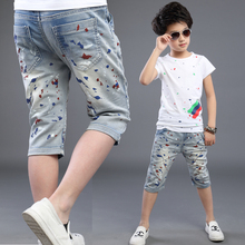 男童2017夏季新款牛仔裤七分裤薄款儿童装中裤中大童短裤破洞外穿