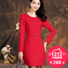 2017春秋冬女装新款长袖韩版OL毛呢连衣裙羊毛打底裙优雅气质