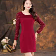 2017春秋装新款韩版大牌蕾丝拼接黑色红色A字打底连衣裙子