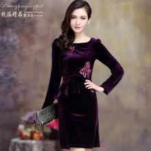 2017金丝绒长袖连衣裙子春装新款专柜正品高档复古修身女装大码