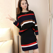 时尚条纹宽松针织套装裙两件套秋冬新款长袖毛衣套裙韩版春秋潮