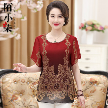 妈妈装短袖雪纺衫夏季中老年女装T恤中年40-50-60岁大码夏装上衣