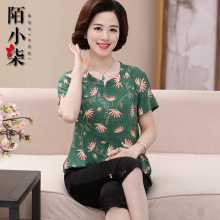套装中老年人奶奶装女装短袖t恤夏装50-60岁老人妈妈装夏装两件套