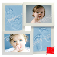 包邮 防尘款婴儿纪念品手印泥脚印宝宝印手足5寸|实木框三折相框