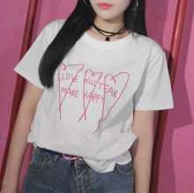 2017春夏韩范休闲风学生圆领印花爱心T恤宽松显瘦简约百搭短袖女