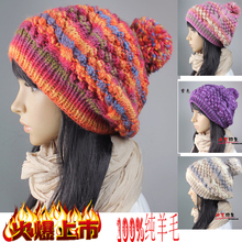 冬天帽子 女 羊毛加厚保暖毛线帽针织帽滑雪帽球帽手工纯羊毛包邮