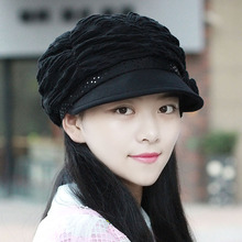 17春夏八角帽翻边贝雷帽韩版淑女鸭舌帽时尚显脸小帽子女帽时装帽